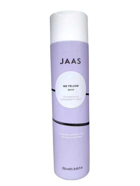 JAAS No Yellow to intensywnie pielęgnująca maska, która nie tylko nawilża i wygładza, ale przede wszystkim neutralizuje żółte i złote refleksy. Dzięki zawartości fioletowego pigmentu przywraca chłodny, świeży odcień włosom już po kilku minutach.