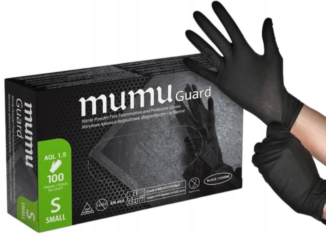 Rękawice nitrylowe czarne bez pudrowe MUMU GUARD – rozmiar S