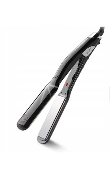 Profesjonalna prostownica z extra dużymi, ruchomymi płytkami tytanowymi z wykończeniem lustrzanym.